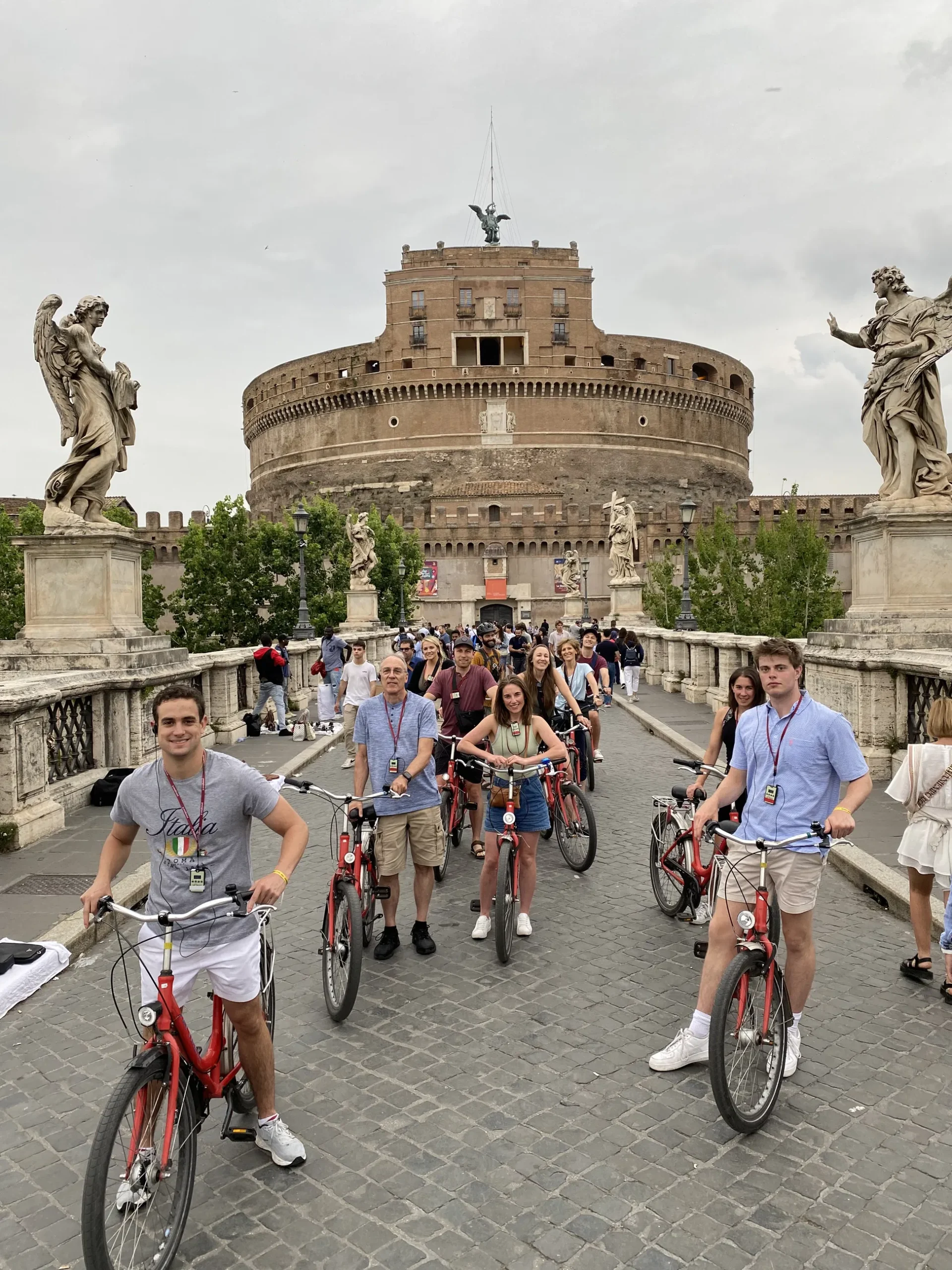 Lungo il percorso, esplorerai il cuore storico cattolico di Roma, passando in bici accanto a icone architettoniche come la Basilica di San Pietro e il maestoso Castel Sant’Angelo, tutte splendidamente illuminate di sera.